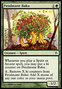 Immer wenn du einen Geist oder einen arkanen Zauber Spielst, kannst du eine Ki-Marke auf den Blütenmähnen-Baku legen.